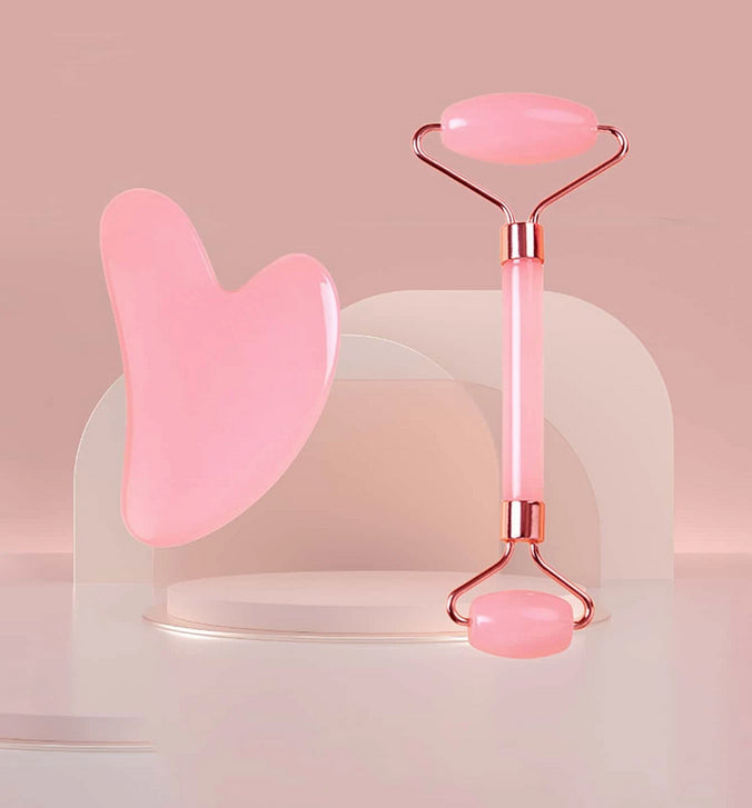 Jade Roller & Gua Sha комплектът на Nudera подпомага лимфния дренаж, намалява подпухналостта и подобрява еластичността на кожата за по-гладък и оформен контур.